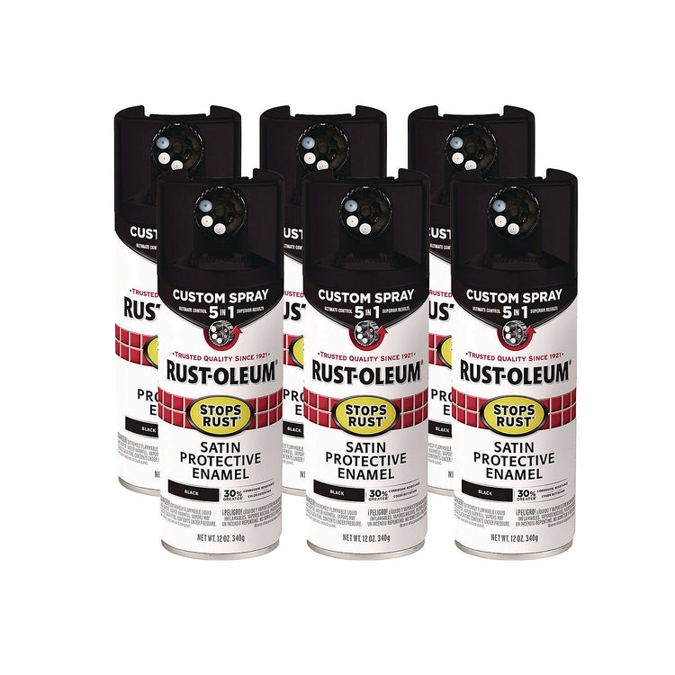Rust-Oleum Stops Rust 5-in-1 Spray Paint, Satin Black, 12 oz., 6/Carton (376869)