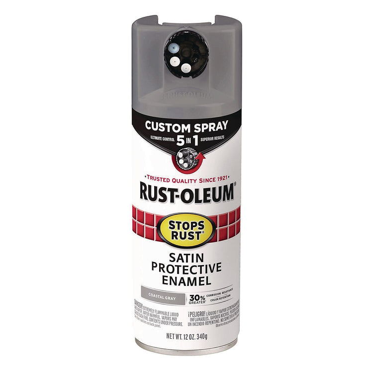 Rust-Oleum Stops Rust Custom Spray 5-in-1 allows you to choose between five different spray patterns for ultimate control and confidence over your next project. The advanced Stops Rust formula provides 30% greater corrosion resistance and color retention compared to original matching Stops Rust colors with standard tip. Ideal for ferrous, nonferrous metal and wood surfaces. Not for use on galvanized metal.
