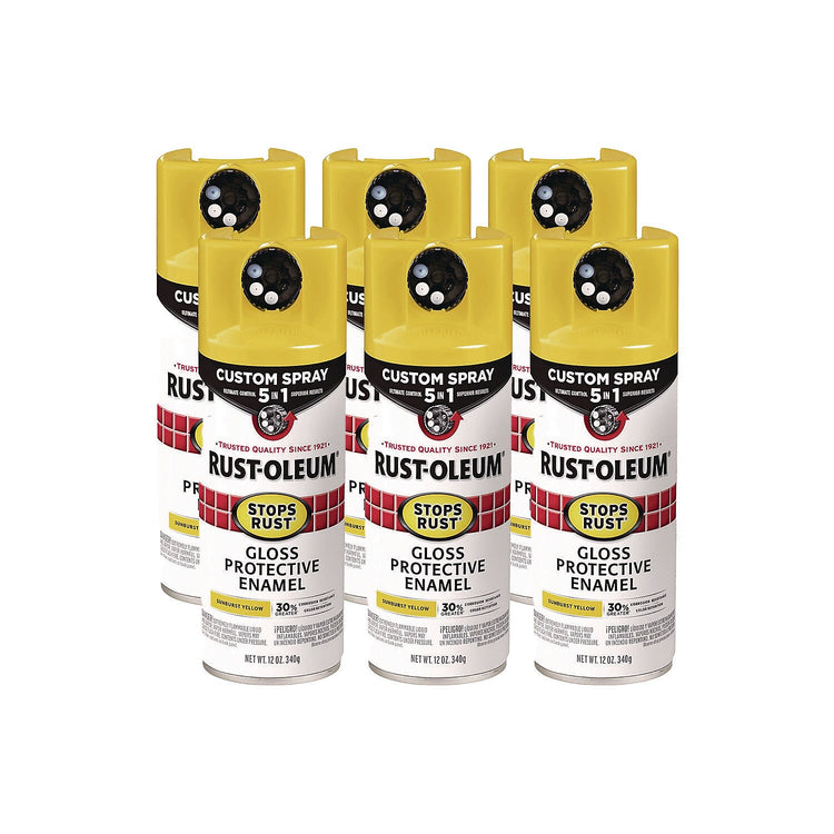 Rust-Oleum Stops Rust Protective Enamel Spray Paint, Gloss Sunburst Yellow, 12 oz., 6/Carton (376898)