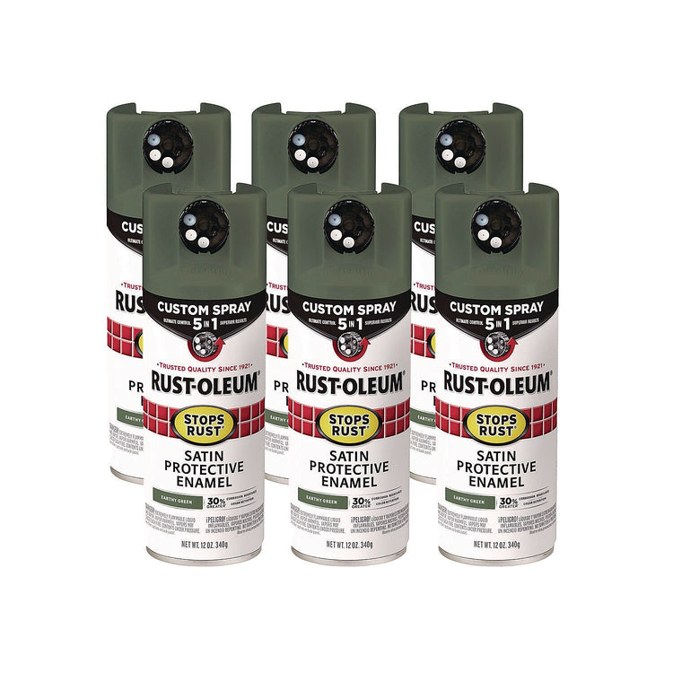 Rust-Oleum Stops Rust Protective Enamel Spray Paint, Satin Earthy Green, 12 oz., 6/Carton (383421)