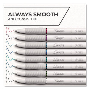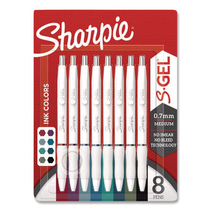 S-Gel Fashion Barrel Gel Pen, Retractable, Medium 0.7 mm, Assorted Ink, White Barrel, 8/Pack