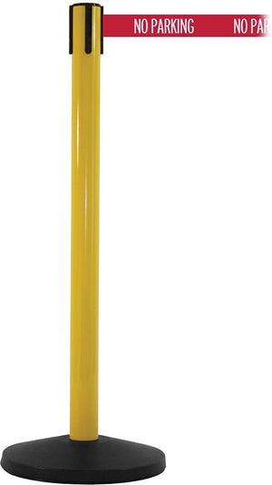 SafetyMaster 450 Yellow Retractable Belt Barrier with 8.5' Red/White NO PARKING Belt (SM450Y-RWNP)
