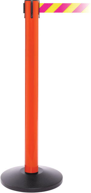 SafetyPro 300 Orange Stanchion Barrier Post with Retractable 16' Yellow/Magenta Belt
