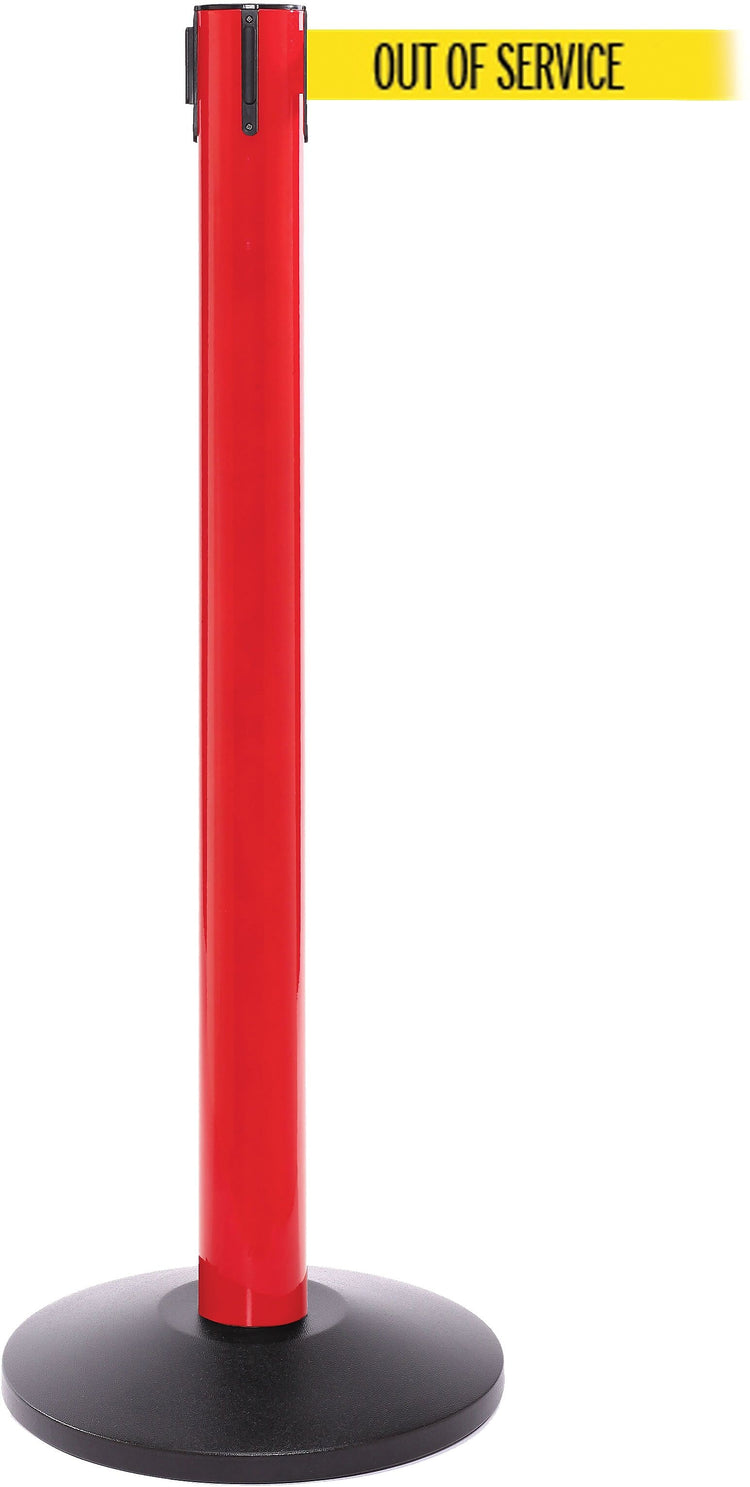 SafetyPro 300 Red Stanchion Barrier Post with Retractable 16' Yellow/Black OUT OF SERV Belt