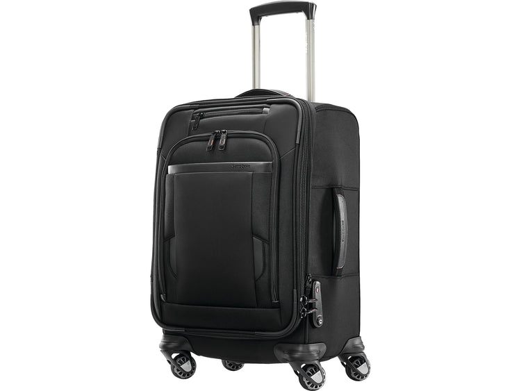 Travel with the Samsonite Pro bag that goes the distance with durable construction and upgraded conveniences. When you live out of your suitcase, details matter. Drop your phone in the dedicated pocket, and it charges wirelessly. Guard your identity with the RFID pocket. Hang clothes neatly in the trifold suiter, and pack liquids in a Wetpak pocket. All in the durable yet sophisticated bag.