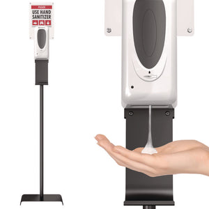Ensure a hygienic environment with our sensor sanitizer dispenser, available in both wall mount and floor stand models. Both models feature a 100% touch-free automatic dispenser that is compatible with sanitizer liquid, gel, or alcohol, and include a refillable 1,000 mL sanitizer reservoir. They are powered by four C size batteries (not included) or an optional AC adapter (sold separately) for reliable operation. The wall mount model includes hardware and a drip tray, allowing for placement at any height to meet ADA compliance and is constructed from durable ABS plastic for long-lasting use, while the floor stand model comes with hardware, a drip tray, and a customizable sign board, featuring an adjustable height stand to meet ADA compliance and combines durable metal and ABS plastic construction for stability and longevity. Perfect for foodservice, gymnasiums, hospitality, medical, multi-family residential, and retail environments, choose the model that best suits your needs and maintain a clean and safe environment with our versatile sensor sanitizer dispenser.
