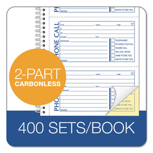 Second Nature Phone Call Book, Two-Part Carbonless, 5 x 2.75, 4 Forms/Sheet, 400 Forms Total