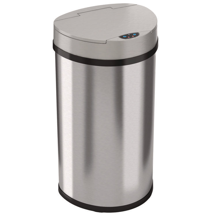 Sensor Trash Can, Half-Round Cylinder, 13 gal, Plastic/Stainless Steel, Silver