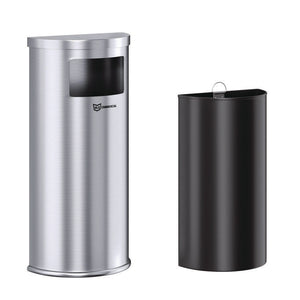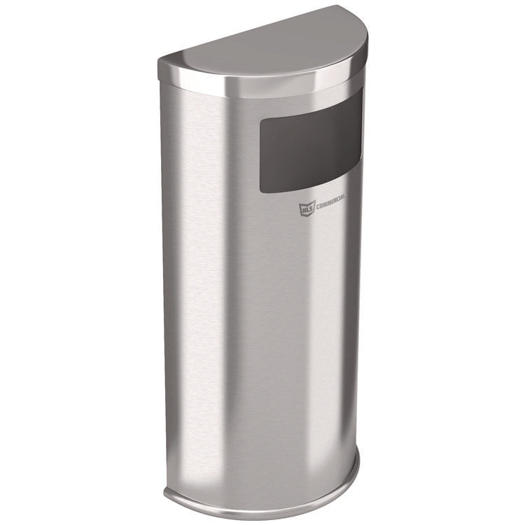 Maximize your space with stainless steel half-round side-entry trash can. Designed for easy access and quick disposals, this versatile bin can be wall-mounted, making it ideal for lobbies, restrooms, and other high-traffic areas. The galvanized steel removable inner bucket, equipped with handles, simplifies emptying and maintenance. Crafted from durable and attractive stainless steel, this trash can offers a sleek, slim, and space-saving design that integrates seamlessly into any environment.