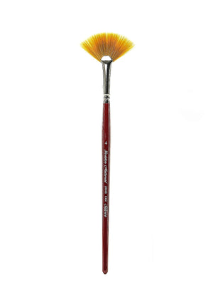 A unique blend of natural hair and tapered Golden Taklon filaments creates superb, versatile acrylic and oil brushes with extraordinary spring and good color holding capacity. Hair is precisely blended, skillfully cupped, and carefully set in nickel bra ss ferrules. Hardwood handles are lacquered in a beautiful red wine stain with a distinctive silver tip.