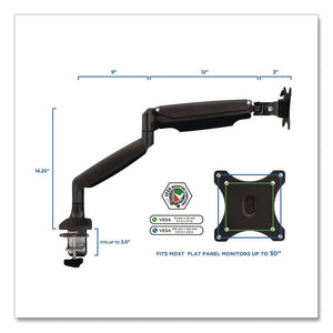 Single Monitor Gas-Spring Mounting Arm, For 13" to 32" Monitors, 360 Degree Rotation, +/-45 Degree Tilt, Black, Supports 20lb
