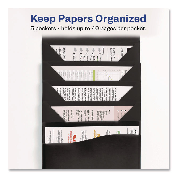 Slide and View Expanding File, 5 Sections, Cord/Hook Closure, Letter Size, Black