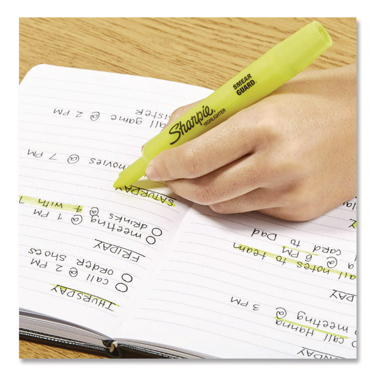 Arm yourself with enough ink to see every project through to the glorious end with Sharpie Tank Highlighters. Gotta remember this, gotta do that, gotta go there, gotta see everything. Perfect for when info is high-priority and plenty of ink is a must, Sharpie highlighters make everything highly visible. With brilliant, see-through colors and quick-drying ink, these highlighters make your most important thoughts and notes jump off the page in an array of easy-to-read shades. The versatile chisel tip let's you quickly switch between precision and bold coverage. It's no wonder why Sharpie is the gotta have highlighter for travel itineraries, camping checklists, escape plans and the rest of life's major highpoints.