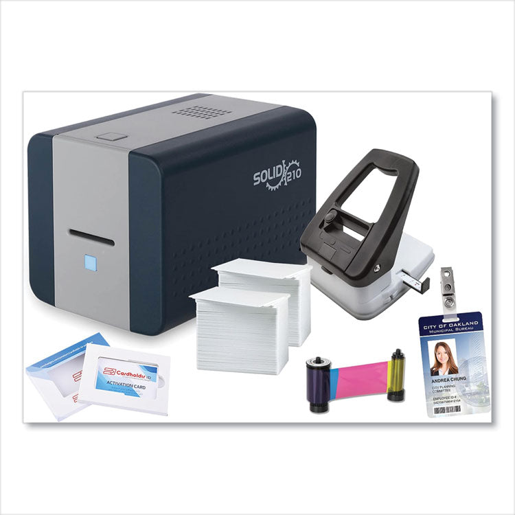 The SOLID-210 is designed for manual card feeding to offer a simple and quick solution for low-volume card printing. It supports full edge-to edge color and monochrome rewritable technology, as well as magnetic and smart card encoding. It is ideal for small business and office environment where needed temporary ID card issuance. Its compact design that fits your workspace. With its LED indicator, the user can easily recognize the status of the SOLID-210 card printers (ready to print, power and error). With its crystal-clear professional printing quality, easy to use features and low price, the SOLID-210 can be used for any of your small business plastic card needs.