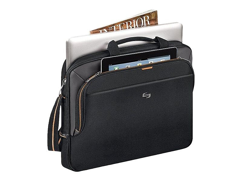Solo New York Ace Slim 15.6" Laptop Briefcase, Black/Orange Polyester (UBN101-4)