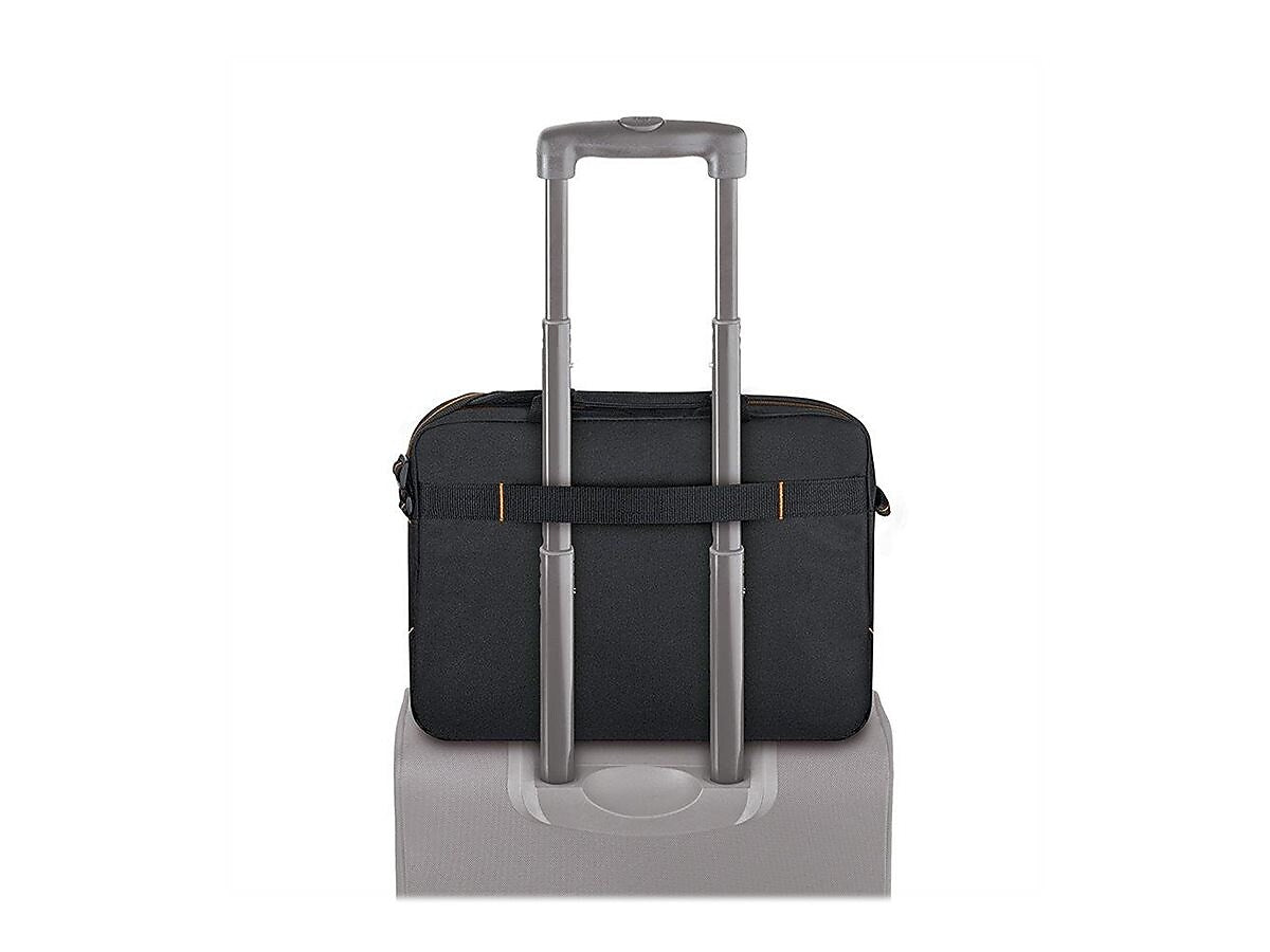 Work And Travel: This laptop bag has an adjustable strap for easy carrying. The handy back strap slides over the luggage handle of your rolling carrying on or suitcase. Great for business travel and commuting!
