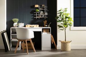- Easy-to-access storage spaces - some open, some closed - for a neat, orderly work space