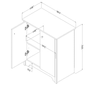 - Behind the doors: 2 storage spaces separated by 1 adjustable shelf