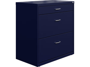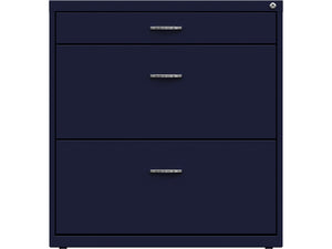 Space Solutions 3-Drawer Lateral File Cabinet, Letter/Legal Size, Lockable, 31.88"H x 30"W x 17.63"D, Navy (25073)