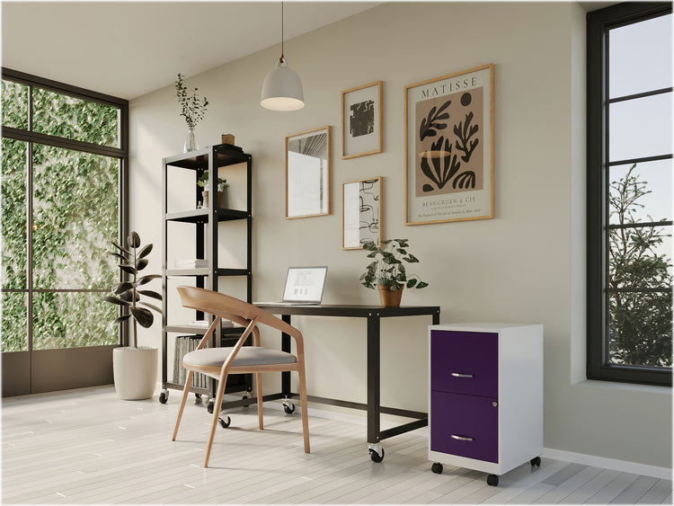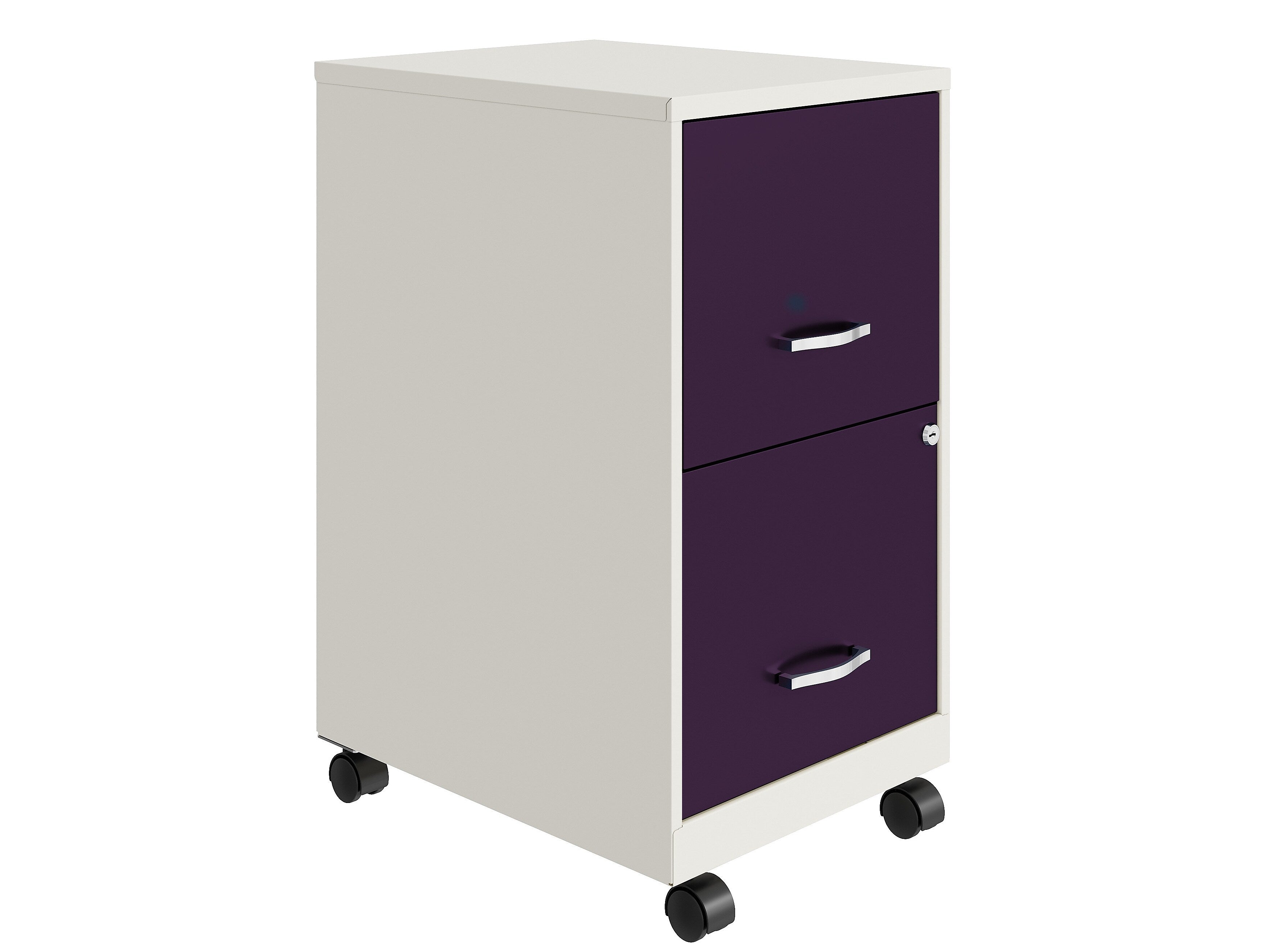 Space Solutions SOHO Smart File 2-Drawer Mobile Vertical File Cabinet, Letter Size, Lockable, Pearl White/Midnight Purple(25336)
