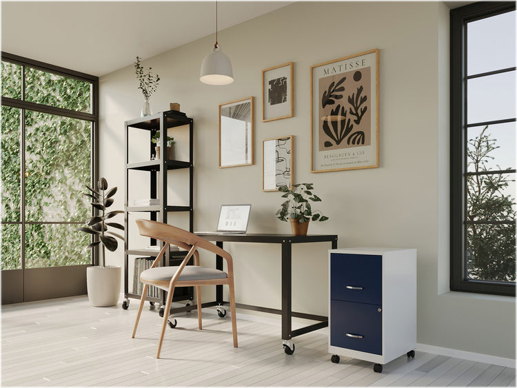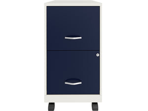 Space Solutions SOHO Smart File 2-Drawer Mobile Vertical File Cabinet, Letter Size, Lockable, Pearl White/Navy (25335)