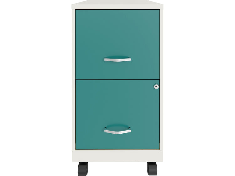 Space Solutions SOHO Smart File 2-Drawer Mobile Vertical File Cabinet, Letter Size, Lockable, Pearl White/Teal (25333)
