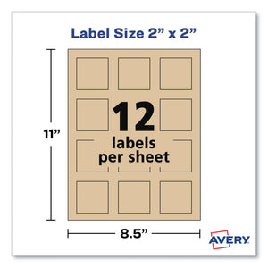 Square Print-To-The-Edge Labels, Inkjet/laser Printers, 2 X 2, Kraft Brown, 12/sheet, 25 Sheets/pack