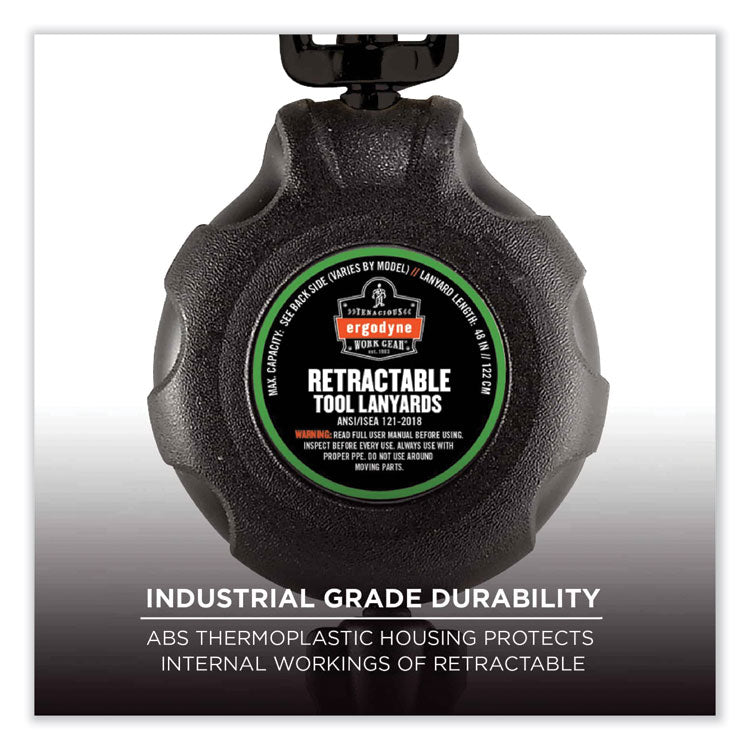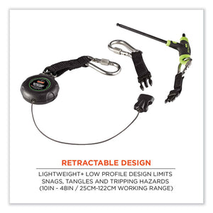 Squids 3000 Retractable Tool Lanyard with Carabiner Anchor, 1 lb Working Capacity, 48" Long, Black
