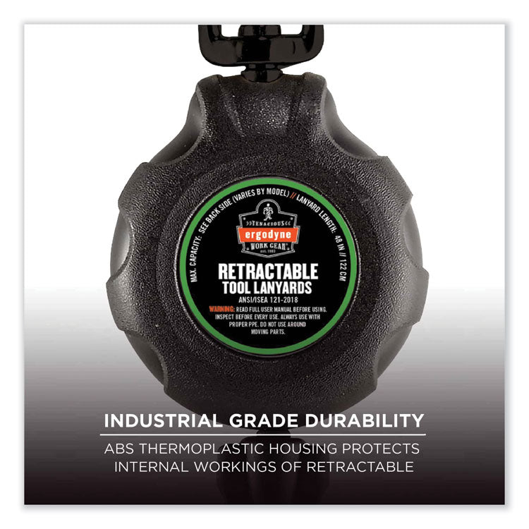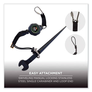The patented Squids 3001 Retractable Tool Lanyard with Choking-Loop Tool Tether + Carabiner Anchor features a lightweight, low-profile retractable design that limits snags, tangles and tripping hazards. Use the choking-loop tool tether with energy-absorbing cord and tubular nylon webbing to secure to hand tools weighing up to 2 lb, so that your tool is always kept close while you work at heights. Use the carabiner for connecting the lanyard to your climbing harness's D-rings or to some other anchor point. Swivel rings on both ends feature a full 360° rotational range to minimize ergonomics-related hassles. Fixed-length locks with self-setting pawls make it easy to set the desired lanyard length. Set your working length by pulling the ultra-strong Technora cord out to the desired length, and then slightly tug the cord upwards to lock it in place. To retract, slightly extend the Technora cord out a bit further to release the lock, allowing the cord to retract back into its industrial-grade, ABS housing. Modular connecting buckle makes it easy to quickly switch out your attached tool for any other that you have equipped with a Squids 3026 Choking-Loop Tool Tether (additional tethers sold separately). Safety lanyards are an integral part of any fall-protection plan and are used to reduce the risks associated with falling objects to ensure workplace safety. When working at-heights, it's critical to tether your tools, so do it right with Squids tool lanyards and tethers. Third-party certified to a 2:1 safety factor.