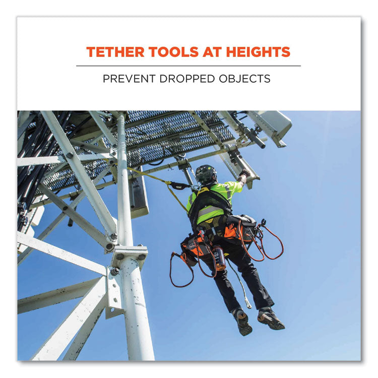 The Squids 3111F(x) Tool Lanyard with Stainless-Steel Carabiners features a patented design that prevents falling objects while absorbing any dynamic energy that might be transmitted through the lanyard's length to reduce any torque that your body, or anchor point, might experience if a drop occurs. By reducing this shock load, this tested and approved design prevents the tool from pulling the user down with it, effectively protecting everyone involved, both those above and those below. Durable, low-profile 1680 denier polyester, elastic-blend webbing with high-strength, three-ply nylon stitching on both ends ensures secure, reliable, lighter-weight performance, and the lanyard's single-length format eliminates the potential for the weak points commonly seen on multi-component lanyard alternatives. Auto-locking, corrosion-resistant, stainless-steel carabiners on both ends feature captive-eye attachment points to help the user better predict the direction of loads to minimize the potential for the lanyard hooking into the carabiners' gates as well as the potential for other related, dangerous lanyard issues. When working at heights, it's essential to tether your tools, and these tool lanyards are built to withstand defined weight limits and can easily be used by any worker to help avoid accidentally dropping objects that could cause extensive property damage and serious, potentially deadly injuries. This tool lanyard is third-party certified to a 15 lb maximum working capacity with a 2:1 safety factor.