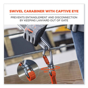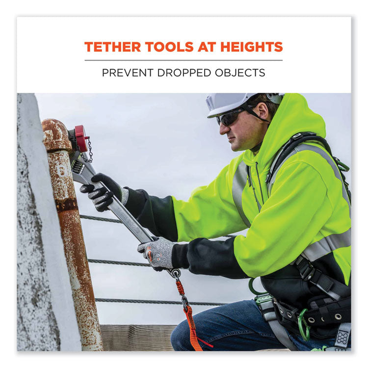 Make the Squids 3149 Tool Lanyard with XL + Swivel Carabiners an integral part of your overall fall protection plan to reduce the risk of falling objects and help ensure overall workplace safety. Designed to be anchored to a structure rather than the worker, this industrial-grade tool lanyard features an extra-large, heavy-duty aluminum, double-locking carabiner on one end for easily attaching to oversized drills, heavy wrecking bars, handrails and more. A smaller auto-closing, auto-double-locking swivel carabiner on the other end simplifies attachments to a wide variety of smaller tools and anchor points. The smaller, swiveling-end carabiner's captive-eye attachment point helps the user better predict load shifts to prevent the webbing from working its way into the gate of the carabiner, while simultaneously minimizing the potential for webbing tangles. Non-shock absorbing webbing delivers better drop-protection when working with heavier tools, and its single-length construction minimizes the potential for weak points. Heavy-gauge nylon stitching throughout provides the added strength and durability needed to withstand the harshest work environments. When working at heights, choosing the best tool tethering equipment matters, because there are no second chances. Third-party certified to an 80 lb maximum working capacity with a 2:1 safety factor.