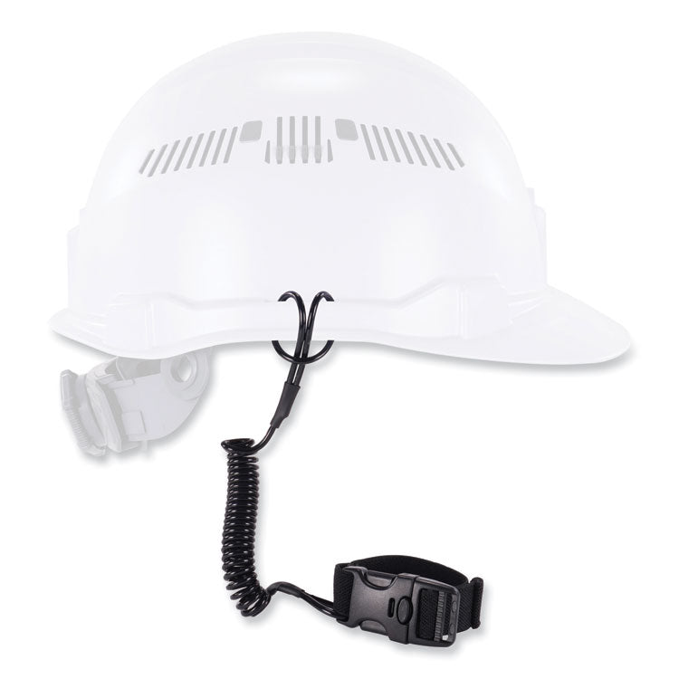 The Squids 3157 Coiled Lanyard with Buckle securely tethers hard hats, hand tools, tape measures and more to minimize inconvenient hassles while preventing dropped objects from becoming dangerous projectiles. A durable double-lock buckle makes for easy anchoring to fall-protection harnesses, safety-vest straps, tool belts and more, while the low-profile coil design stays out of the workers way to minimize the potential for snag, tangle and tripping hazards. Compatible with all hard hats, this safety lanyard can be easily connected via the accessory slot or suspension system, and it can also be used for tethering hand tools and other smaller objects through a tool's captive hole eyelet or at retrofitted tool-attachment points. Tested to be trusted and built to withstand harsh conditions, this lanyard is third-party certified to a maximum working capacity of 2 lb with a 2:1 safety factor.