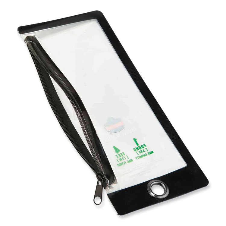 The Squids 3195 Cell Phone Tool Tethering Kit includes both a Squids 3156 Coil-Cable Tool Lanyard and a Squids 3760 Water-Resistant Phone Pouch Trap, making it ideal for keeping your smart phone safe and secure, while minimizing the potential for inconvenient and potentially very dangerous object drops when you're working at heights. Built and tested to endure the toughest workplace conditions, the included coiled-cable, polyurethane tool lanyard features a low-profile, lightweight design that minimizes snag and tangle hazards, while its screw-gate aluminum carabiner on one end and fixed-loop tether on the other simplifies both tool-attachments and anchoring, even when the user is wearing heavy work gloves. The included phone pouch features a clear, touchscreen-compatible face, reinforced tarpaulin sides, a zipper-closure and a steel grommet attachment ring. Kit is third-party certified to a maximum tethering capacity of 1 lb.