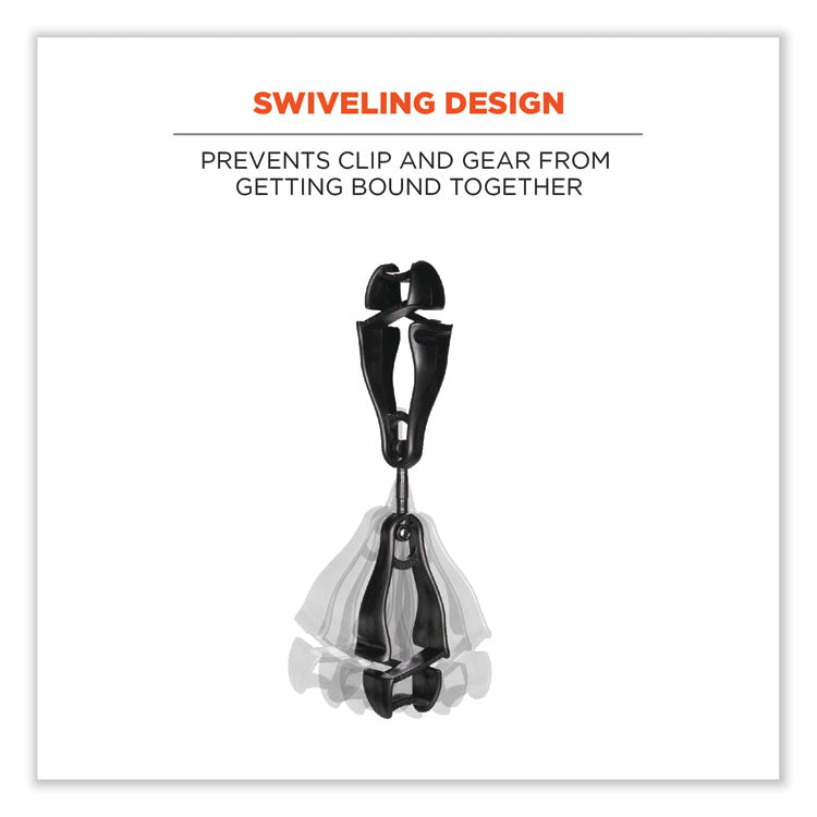 Squids 3420 Dual Clip Swivel Glove Clip Holder, 1 x 0.6 x 5.5, Acetal Copolymer, Black, 100/Pack