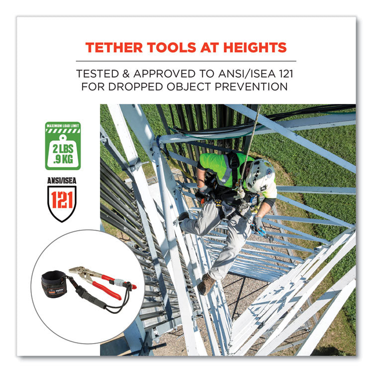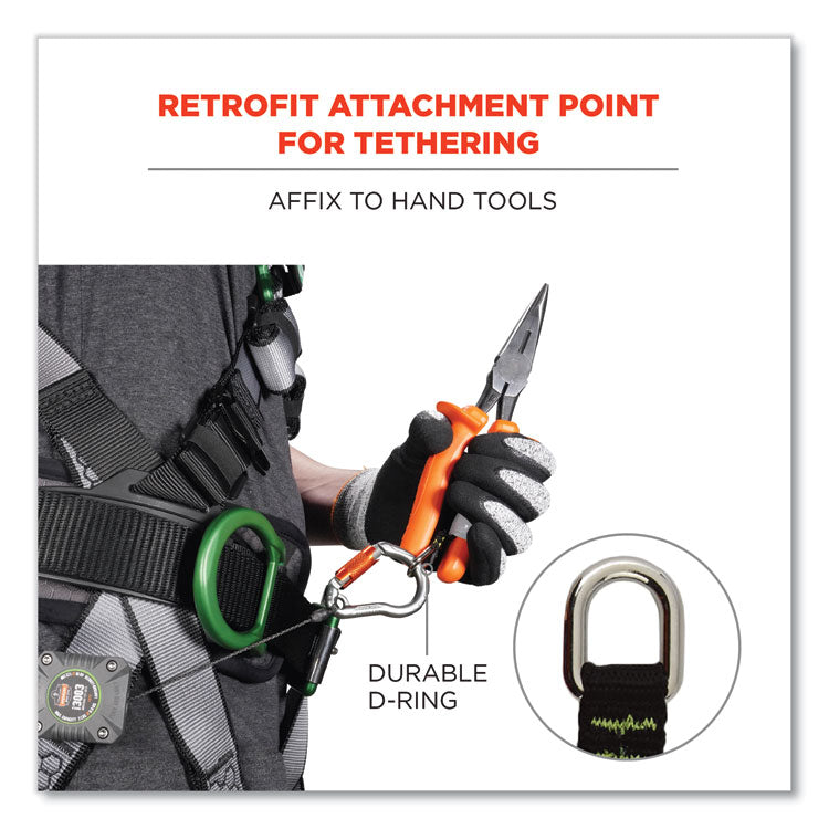 - Corrosion-resistant, stainless-steel D-ring on one end for attaching to tool lanyards.