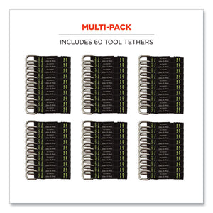 Squids 3700 Nylon Webbing Tool Tails with D-Rings, 2 lb Max Working Capacity, 3.5" Long, Black, 6/Pack, 10 Packs/Carton