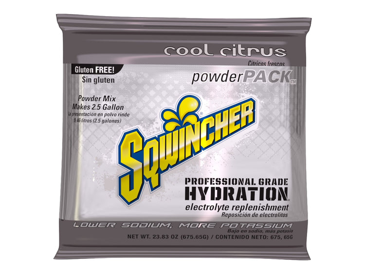 Keep break rooms stocked with this powdered energy drink to stay hydrated. Essential electrolytes, minerals and sodium help you to maintain peak performance in high-heat environments. Each pack of Sqwincher electrolyte drink mix powder concentrate makes 2.5 gallons of drink, ensuring there is enough for a variety of environments.