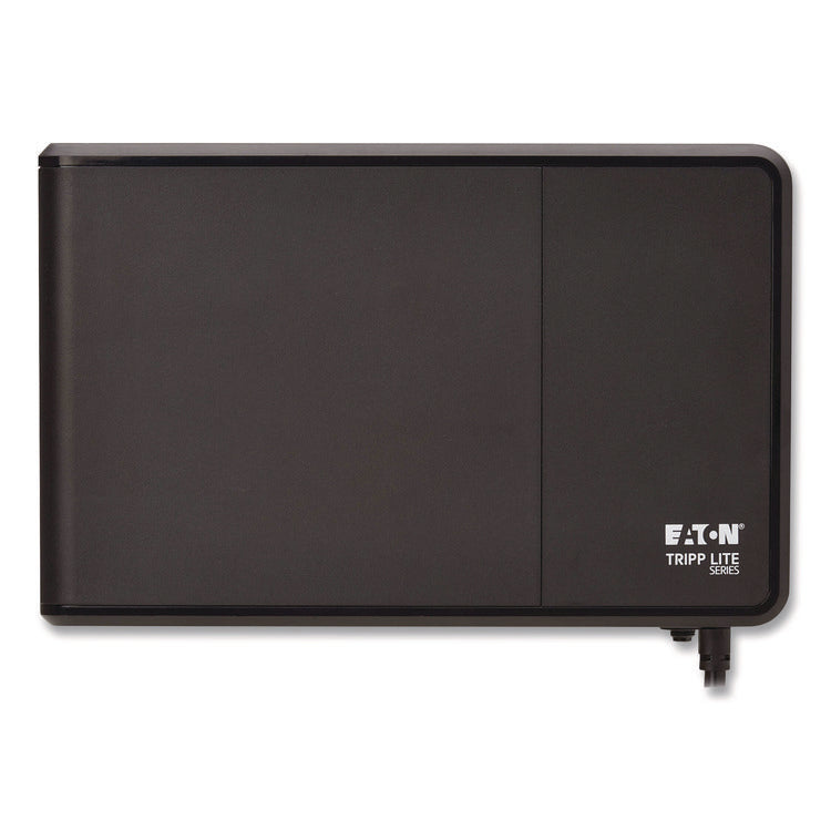 This standby Cloud-connected UPS system provides reliable battery backup and AC power protection against blackouts, brownouts, overvoltages, surges and line noise for home/office computing, networking and point-of-sale equipment in retail, kiosks, food service and light industrial environments. For easy access, the input power cable, Ethernet port, AC outlets, power button and status LEDs are all on the same side. Eaton's Cloud-based remote monitoring app offers convenient setup, control and management of a single UPS or a larger deployment. Scan the QR code on the UPS to download the app to your mobile device. Receive alerts, push configurations, silence alarms or control outlet banks using a mobile app or web browser. Being able to monitor and access an army of UPS systems from a remote location helps reduce the number of site visits, saving you time and money. The unit's NFC (Near-Field Communication) area lets you configure network settings instantly from your mobile device. Restarts automatically once power is restored, regardless of battery charge level, saving you a costly site visit. During short blackouts and brownouts, it switches to battery power to keep connected equipment running. This allows you enough time to save data and complete a safe shutdown in case of a longer outage. Four NEMA 5-15R outlets protect connected devices from the harmful effects of power surges. Also filters out disruptive electromagnetic interference (EMI) and radio frequency interference (RFI) that can destroy data and contribute to lengthy downtime. Self-test capability and user-replaceable internal battery can extend the life of the UPS and minimize disruption to operations. A resettable circuit breaker helps prevent dangerous system overloads. An audible alarm and a red LED indicate a low battery or fault condition. A green LED indicates power and line/battery mode status. The audible alarm can be disabled via the remote monitoring app, which will still respond to silenced alarms. The flatpack housing allows use in locations with higher ambient temperatures (operating temperature range: 32° to 122° F). The small size is suitable for desktop or floor placement. Secure mounting points on the bottom enable horizontal or vertical mounting and are spaced in a 100 x 100 mm VESA pattern for mounting to the back of a monitor with the included hardware. Attachment points allow installation on a shelf or beam with user-supplied cable ties. The five-foot power cord with NEMA 5-15P plug connects to any compatible AC outlet.