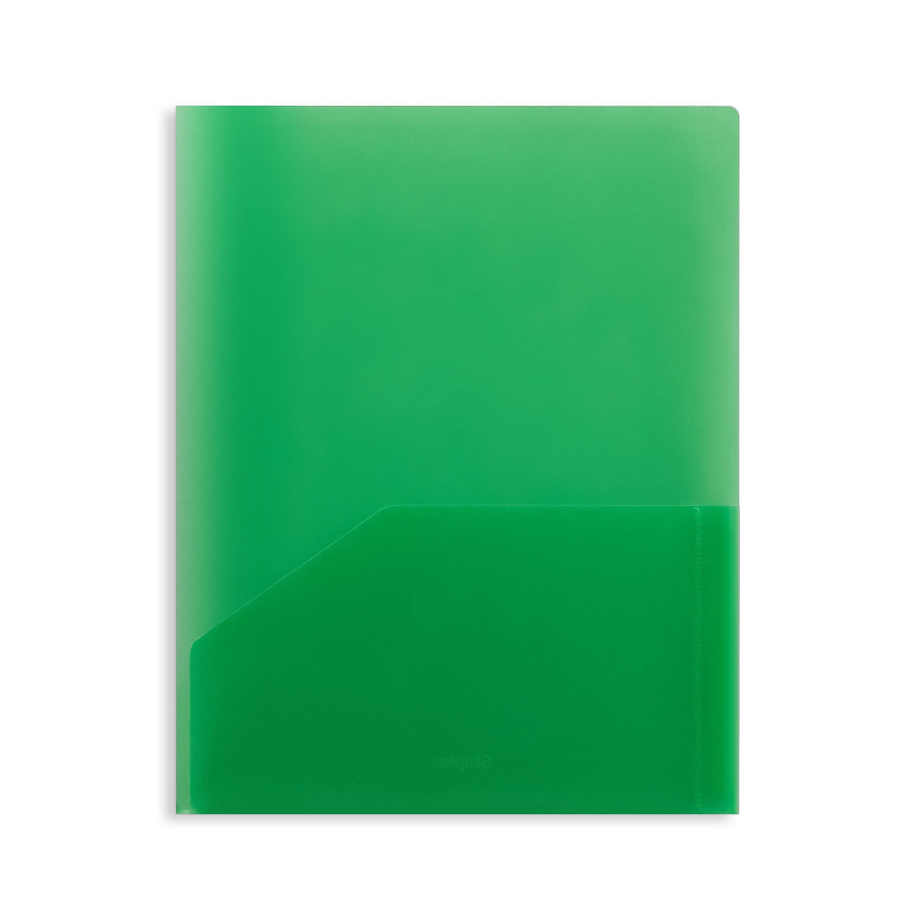Staples® 2-Pocket Poly folder in green is made of soft and semi-translucent poly so that contents can be easily identified.