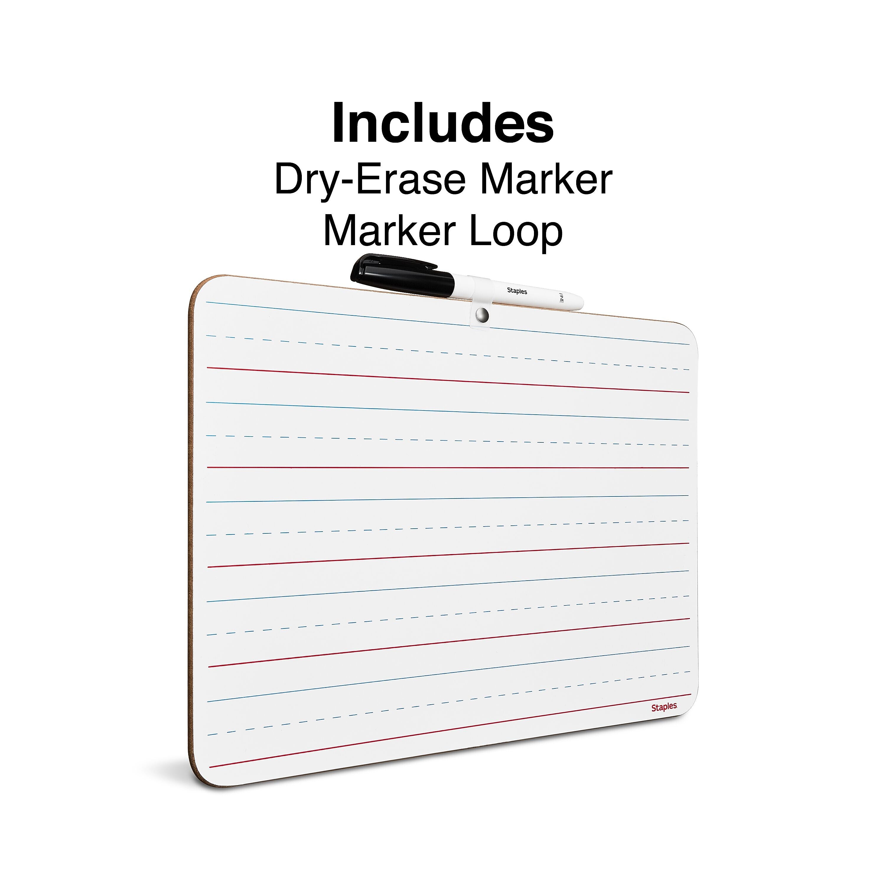 Staples dry-erase learning board is double-sided, ruled and blank.