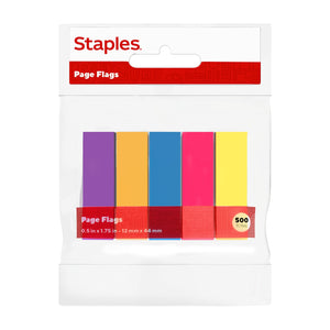 Staples Stickies Page Flags, 0.5" Wide, Assorted Colors, 500/Pack (19674)