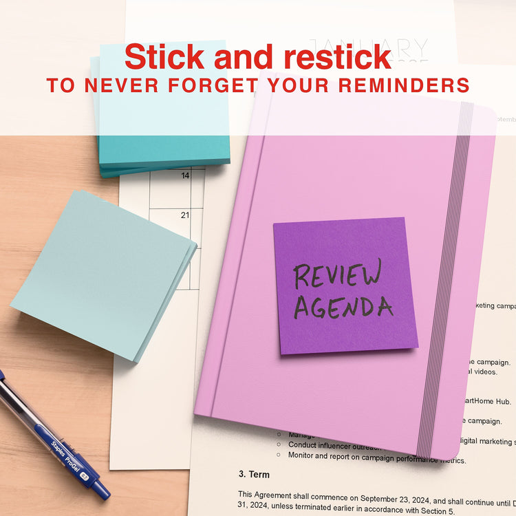 Staples Sticky Notes, 3" x 3", Marina Collection, 100 Sheets/Pad, 12 Pads/Pack (19758-US)