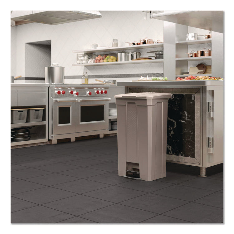 The Suncast Commercial® Step-On Trash Can is a smart solution for your waste management needs. This can features a foot pedal on the front of the can that allows for an easy and quick way to dispose of trash into the can. Engineered with high-quality resin, this trash can will not rust and is resistant to denting and bending and is easy to clean and disinfect. With a large capacity and hands-free operation, this trash can is ideal for busy environments that demand efficiency and hygiene. This step-on trash can is designed to meet the demands of everyday use, where a quick disposal is needed!