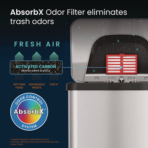 Upgrade your waste management with our step pedal sensor trash can, featuring a 100% automatic pedal sensor that opens the lid with just a light tap. Ideal for hospitality, medical, multi-family residential, and retail environments, this bin includes an odor filter to keep the surrounding area fresh and clean. Its durable stainless steel body and ABS plastic lid provide both style and durability, while a carry handle makes it easy to lift and move. Powered by four D size batteries (not included) or an optional AC adapter (sold separately).