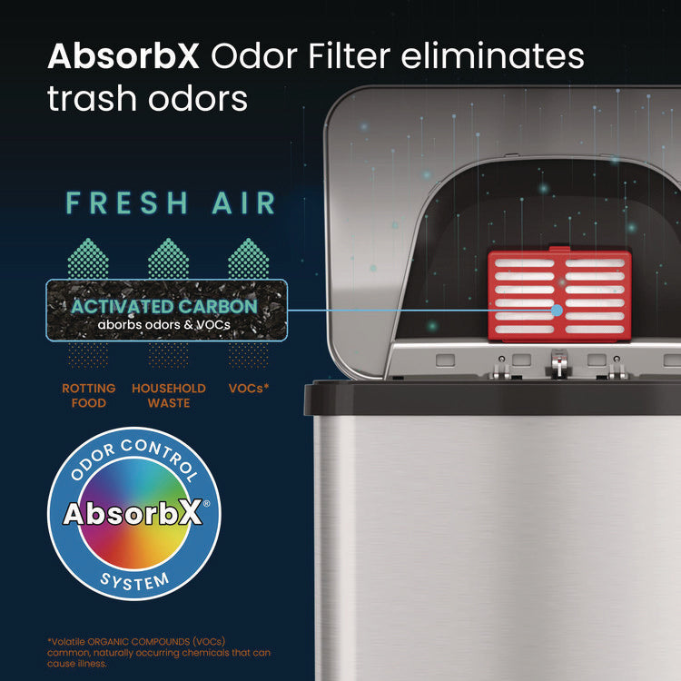 Step Pedal-Sensor Trash Can, 13 gal, Plastic/Stainless Steel, Silver/Black
