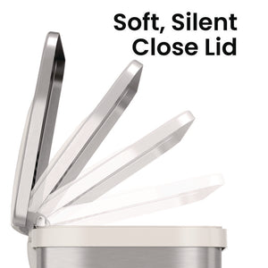 Step Pedal-Sensor Trash Can, 13 gal, Plastic/Stainless Steel, Silver/White