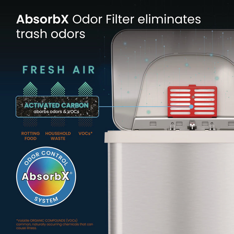 Upgrade your waste management with our step pedal sensor trash can, featuring a 100% automatic pedal sensor that opens the lid with just a light tap. Ideal for hospitality, medical, multi-family residential, and retail environments, this bin includes an odor filter to keep the surrounding area fresh and clean. Its durable stainless steel body and ABS plastic lid provide both style and durability, while a carry handle makes it easy to lift and move. Powered by four D size batteries (not included) or an optional AC adapter (sold separately).