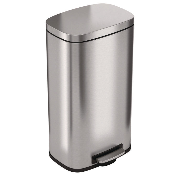 Step Pedal Trash Can, 8 gal, Plastic/Stainless Steel, Silver