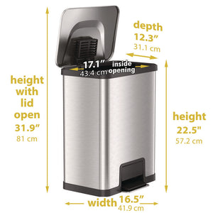 Step Pedal Trash Can with AirStep Technology, 13 gal, Plastic/Stainless Steel, Silver