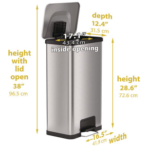 Step Pedal Trash Can with AirStep Technology, 18 gal, Stainless Steel, Silver